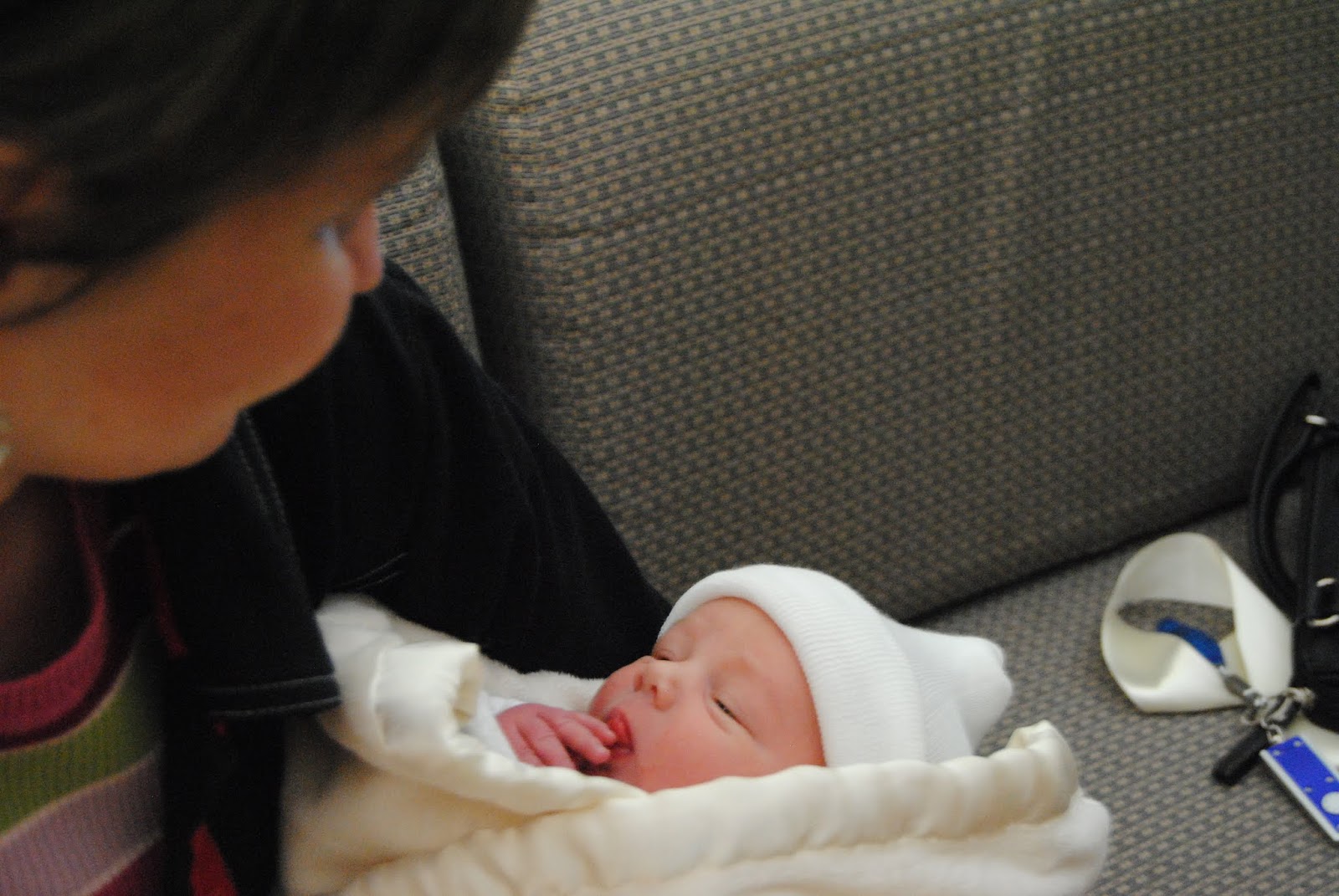 Aunt Jenny is exhausted from her early night and Aunt Allison is holding her new nephew.