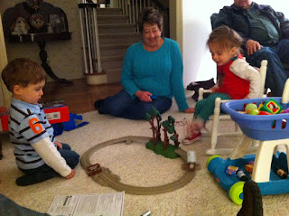 The babies opened their some gifts early so they'd have something to keep them out of trouble. Brookelynn got a nice shopping cart and lots of food for her grocery shopping pleasure.